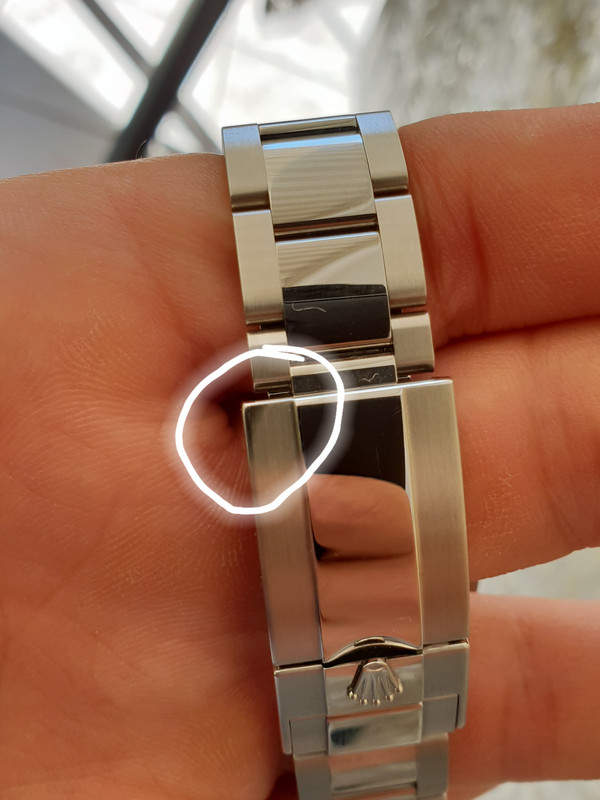 Προς μεγαλη μου εκπληξη αλλα και απογοητευση παραλληλα, προσεξα σημερα οτι στην ακρη του clasp εφυγε το βουρτσισμα κι εμφανιστηκε η γυαλισμενη επιφανεια... Αυτο πιθανον να εγινε σημερα διοτι εχθες δεν ειχε το παραμικρο! Το ρολοι το καθαριζω με πανακι μαλακο που ειναι για οθονες και γυαλια και χρησιμοποιω επισης σπρευ που ειναι για γυαλια η οθονες! Ολα μου τα ρολογια καθαριζονται με τον ιδιο τροπο και δε συναντησα πουθενα την ιδια αλλοιωση!