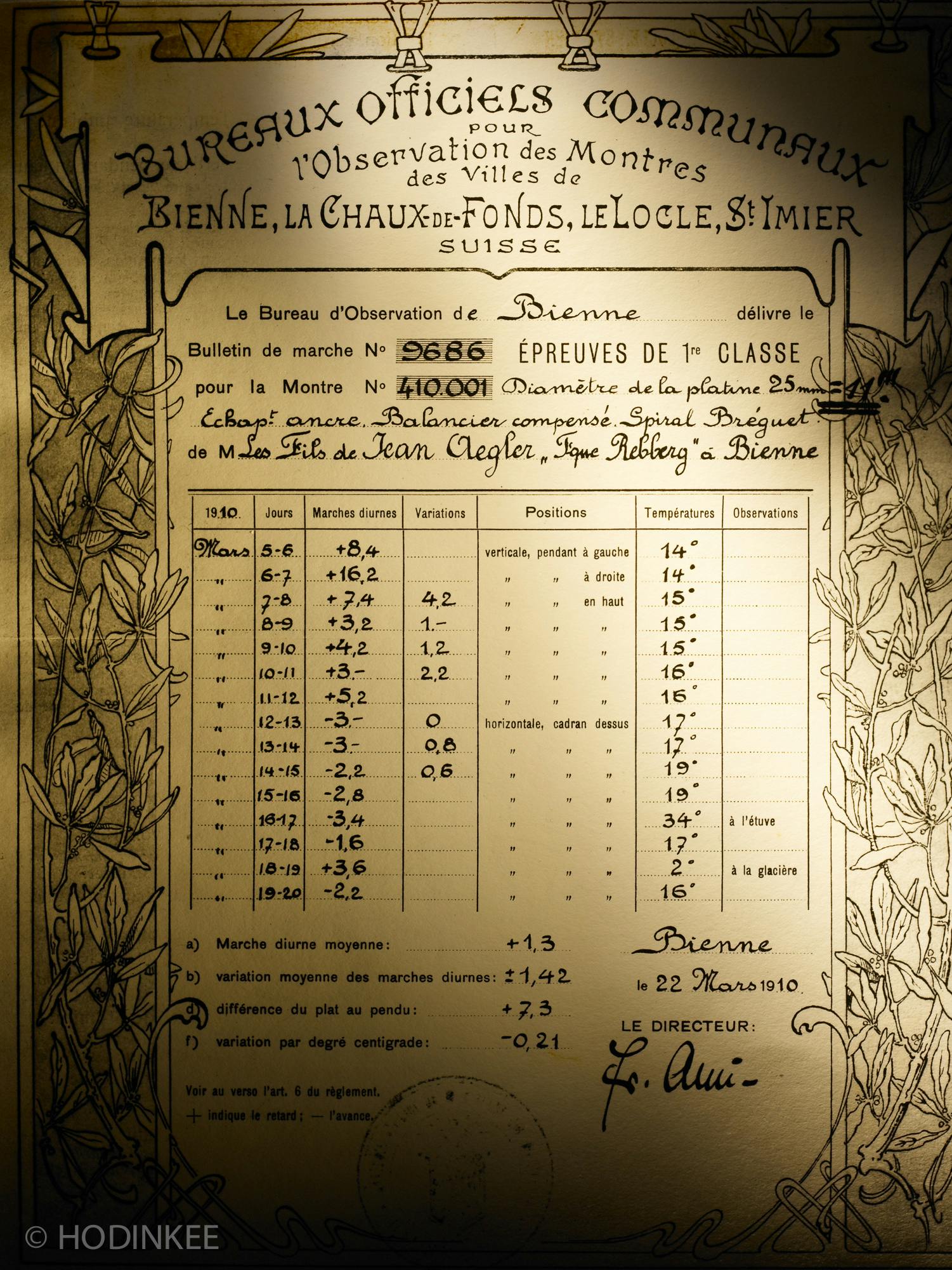 Το πρώτο πιστοποιητικό ακριβείας που εκδόθηκε για ρολόι καρπού.
