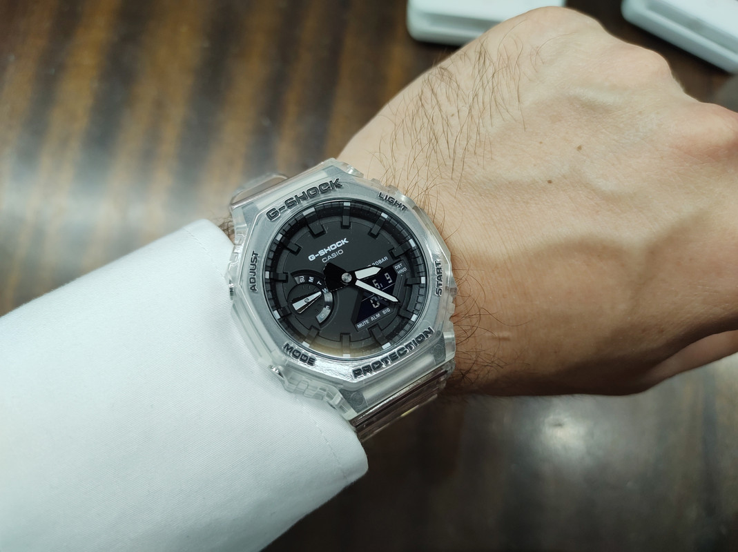 Είναι το GA-2100SKE-7AER από τη σειρά skeleton, απ'οτι μου είπε ο καταστηματάρχης, μόλις χθες τα έφερε η εδώ αντιπροσωπεία και πήραμε ίσως το πρώτο.