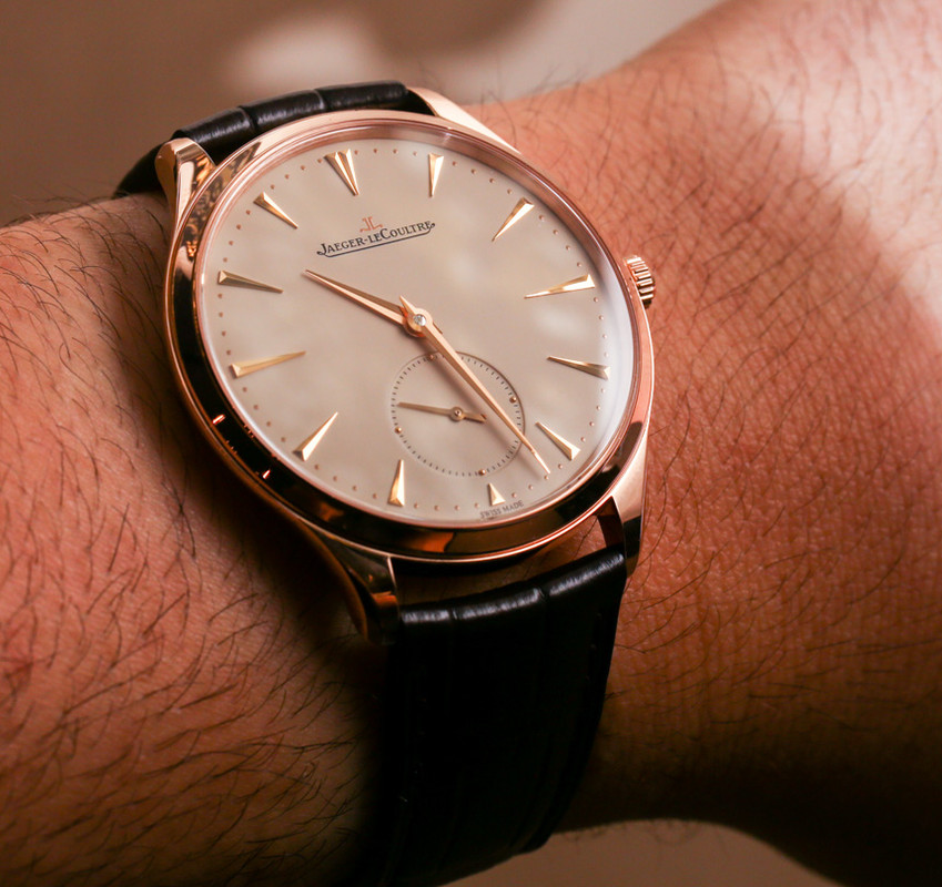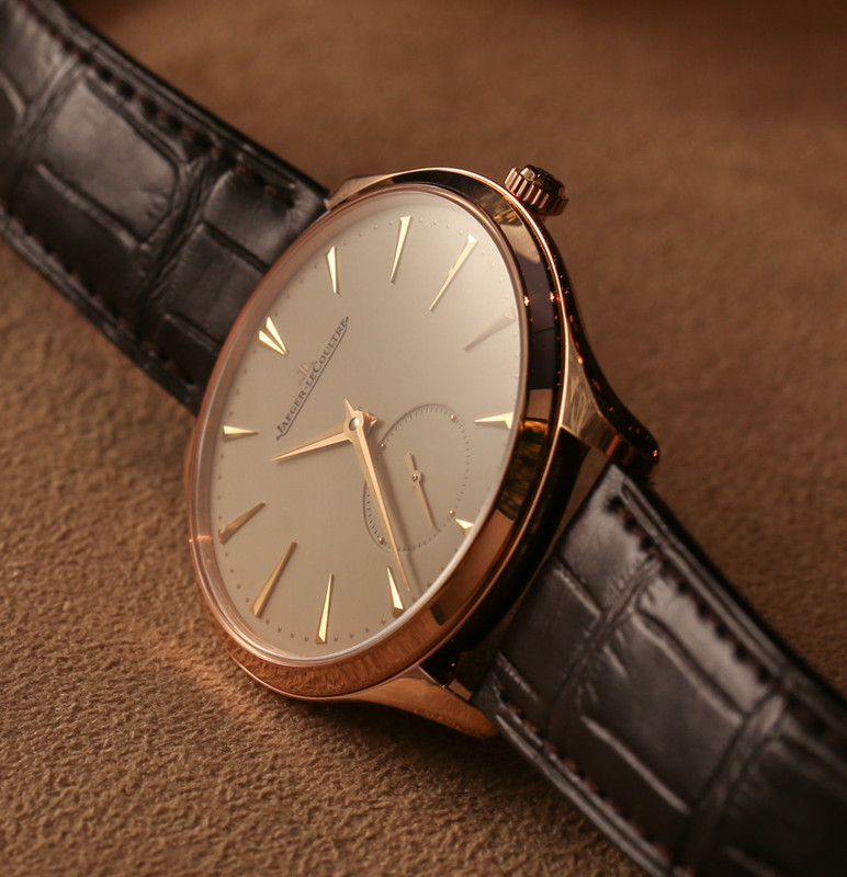 Ένα ρολόι από τη συλλογή της JLC που θεωρώ ότι είναι πολύ όμορφο, είναι το Master Ultra Thin Small Second, σε κάσα από ροζ χρυσό, με ελαφρώς μπεζ καντράν, στα 38,5mm.