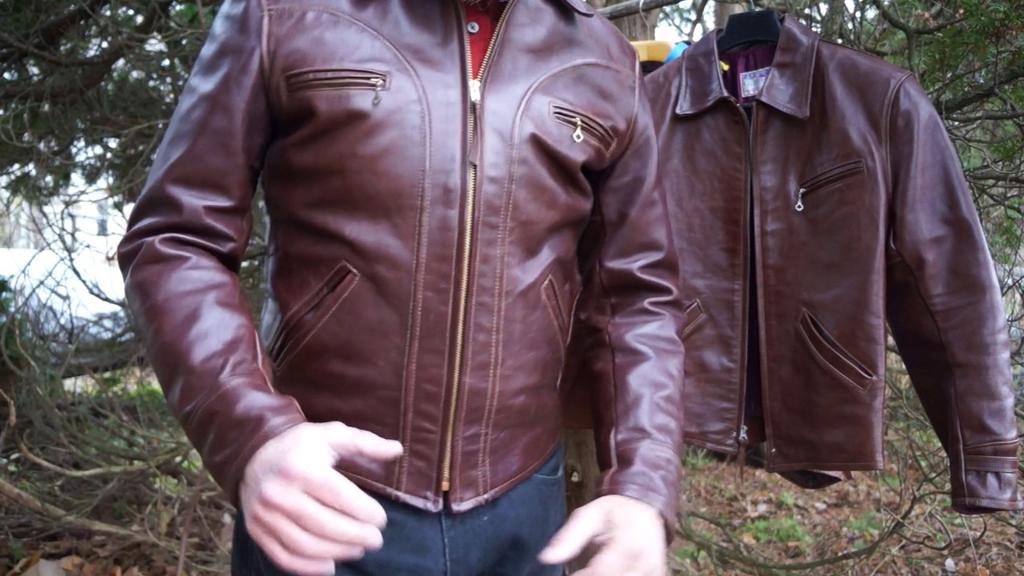To δέρμα είναι steerhide (από αρσενικά μοσχάρια) και μια ιδέα μπορεί κανείς να πάρει εδώ: https://www.schottnyc.com/forum/posts/horsehide_steerhide.htm