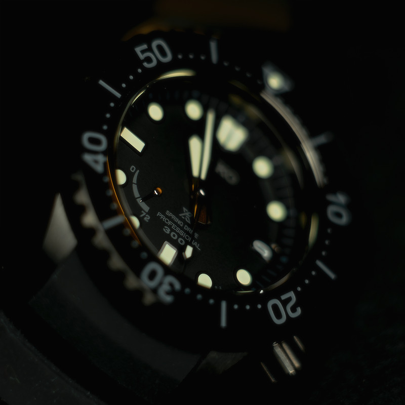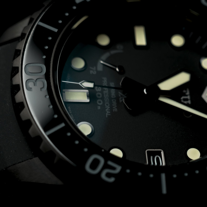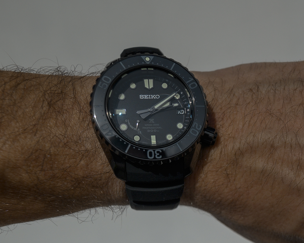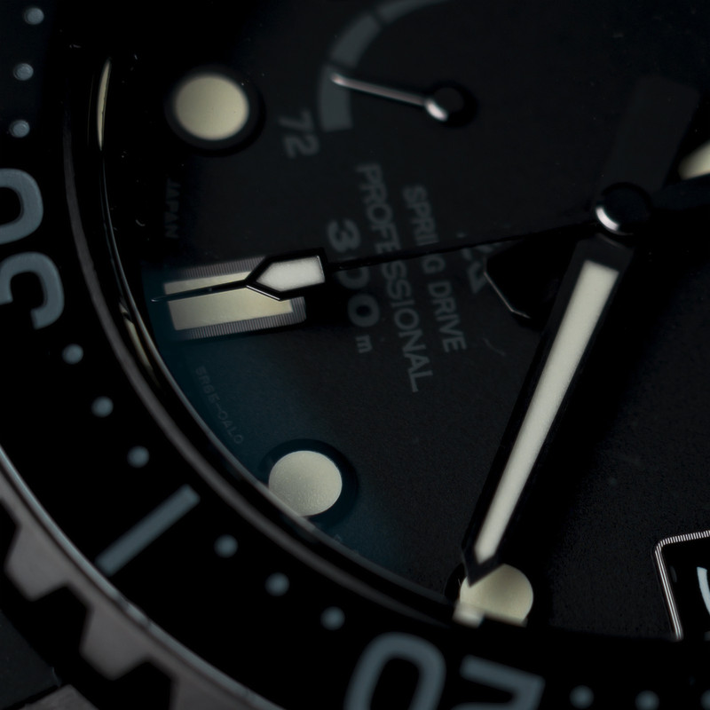 Η μαγεία είναι στο dial, που ακολουθεί το πρότυπο όχι του ΜΜ αλλά του SLA025, δηλαδή μαύρη ματ βάση, ενώ τα accents (σε ασημί βέβαια, όχι χρυσό όπως στο SLA) ιριδίζουν διακριτικά. Όλα στο χέρι, όλα καραΓκραν Σέϊκο.Σε συνδυασμό με το επίπεδο κρύσταλλο, αντανακλάσεις ουσιαστικά δεν υπάρχουν, απ' οποιαδήποτε γωνία.  Επίσης, το dial είναι φωλιασμένο πιο βαθιά μέσα στην κάσα σε σχέση με το MM, ενώ τόσο η ένδειξη του power reserve όσο και οι ενδείξεις "Prospex - Professional -300m" είναι βαμένες σε γκρί απόχρωση και πρέπει να προσέξει κανείς για να τις δει, πολύ διακριτικές.