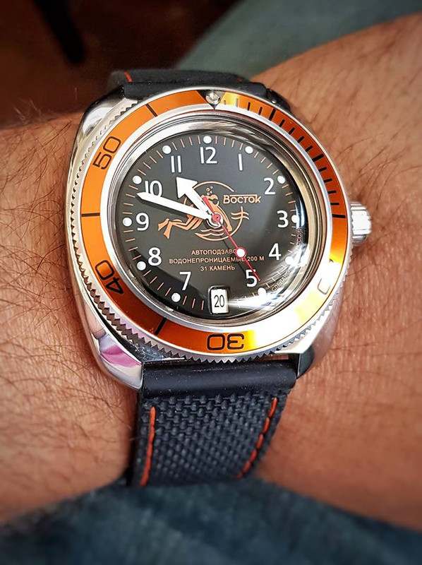 [2] 090380Modding parts links:Stainless Steel Polished Bezel: http://www.ebay.com/itm/BOCTOK-VOSTOK-ST-STEEL-THE-ATLAS-ONE-CUSTOM-ROTATING-BEZEL-DW-01-P-/301954321172?hash=item464de14b14Orange Planet Ocean Style Insert: http://www.ebay.com/itm/182251688518?_trksid=p2057872.m2749.l2649&ssPageName=STRK%3AMEBIDX%3AITSilver Sec Hand: http://www.ebay.com/itm/WATCHES-PARTS-CUSTOM-SuperLuminova-PADDLE-HANDS-ALL-Silver-VOSTOK-Amphibia-Z587-/222272763119?hash=item33c07d34ef:g:eNcAAOSwLnBX9iHeStraps info:i) Orange Rubber Obris Morgan 22mm: http://www.obrismorgan.com/natural_rubber_01_org_22.htmlii) Zulu OSC 22mm: http://www.ebay.com/itm/301950491688?_trksid=p2057872.m2749.l2649&ssPageName=STRK%3AMEBIDX%3AIT©