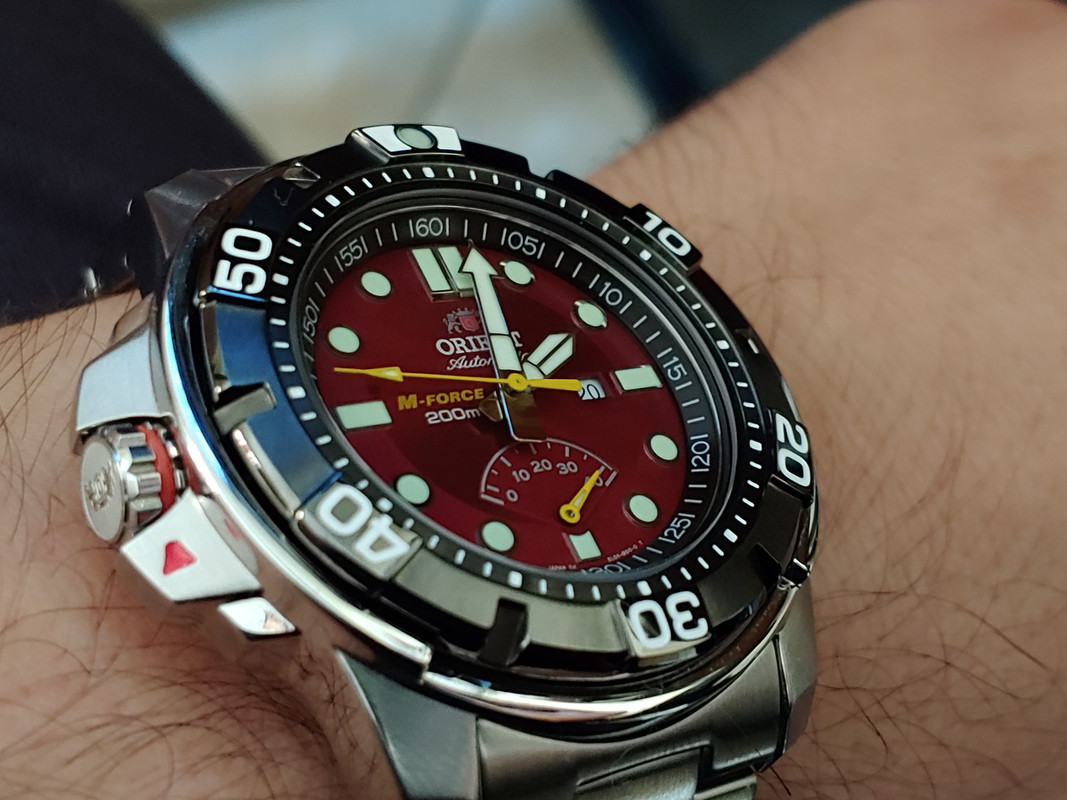 Ίσως ότι πιο κοντινό σε Marine/deck watch, σε πολύ οικονομικό. Αν η Orient βγάλει ένα τέτοιο, με τα ίδια νούμερα, χωρίς τον κεκλιμένο πλαστικό δακτύλιο των λεπτών, χωρίς ημερομηνία, 2mm μικρότερο στα 39mm, με τον κουρδιστό μηχανισμό της εταιρίας, και με μπλε δείκτες όπως στα γνωστά marine μοντέλα (stowa, dornbluth κτλ), θα κάνει πάταγο...Και θα είμαι ο πρώτος που θα το παραγγείλει!