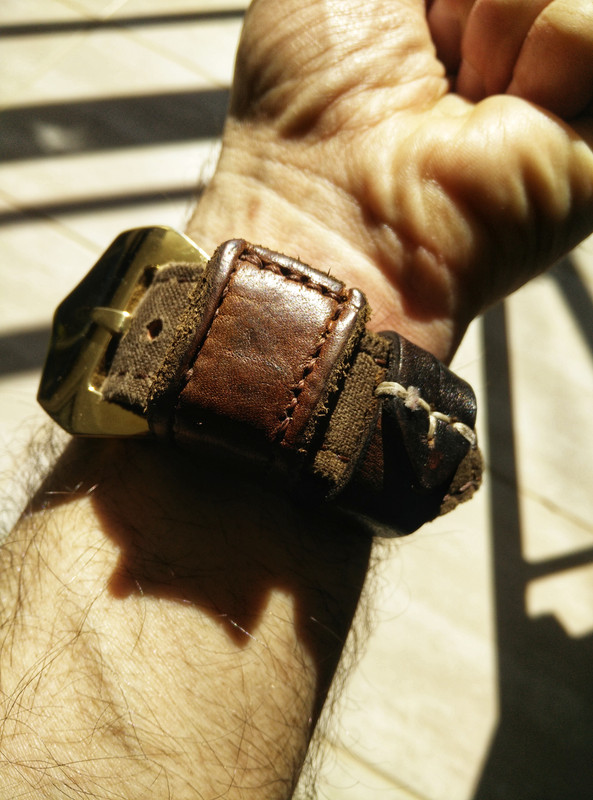 Το λουράκι είναι επίσης χειροποίητο από τον Dr. Phill https://www.ebay.com/sch/strapsssss/m.html?_nkw=&_armrs=1&_ipg=&_from= . 7+ χιλιοστά πάχος ιταλικό μοσχαράκι επενδυμένο εξωτερικά με καραβόπανο προερχόμενο από αντίσκηνο του Γερμανικού Αφρικανικού Σώματος  ( Deutsches Afrikakorps) B’ Παγκοσμίου πολέμου, σταθερό keeper από φυσιγγιοθήκη Mauser, επίσης Β’ Παγκοσμίου και δεύτερο keeper από φυσιγγιοθήκη Mannlicher.  Το concept συμπληρώνει μια 4,5 χιλιοστών πάχους χειροποίητη, ορειχάλκινη (brass)  βιδωτή μπούκλα με γυαλιστερό τελείωμα ανάλογο της κάσας