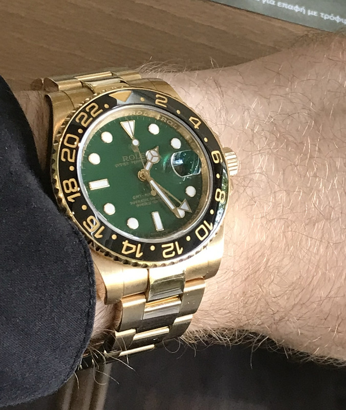 Αυτή τη σύγκριση μόνο στον ύπνο σου μπορείς να την κάνεις γιατί χρυσό πρασινο GMT δύσκολα θα πιάσεις στα χέρια σου ποτέ. Εκτός αν κανουμε καμία μάζωξη και σε αφήσω να χαϊδεψεις λίγο το δικό μου