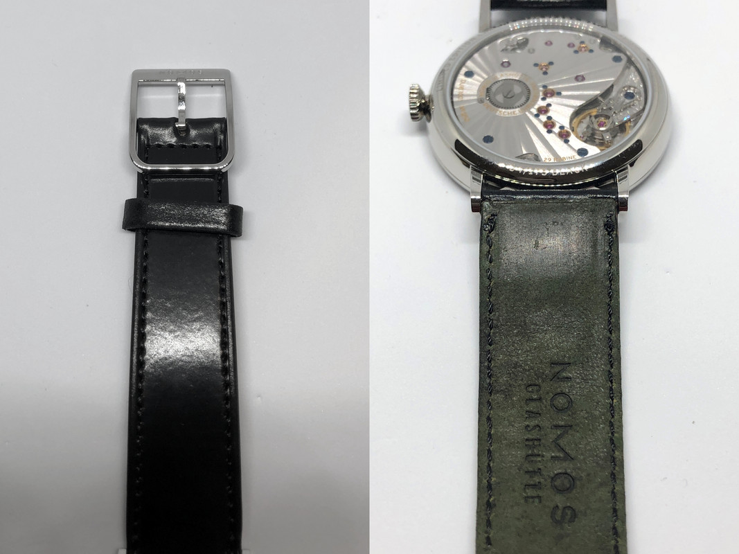 Το δερμάτινο λουράκι είναι λίγο γυαλιστερό, ταιριάζει πολύ στο ρολόι, είναι ποιοτικό αλλά όχι κάτι ιδιαίτερο. Σίγουρα δεν είναι ανάλογο της ποιότητας και της τιμής που έχει το ρολόι. Το ίδιο ισχύει και για το κούμπωμα. Σε αυτό το επίπεδο θα ήθελα να υπάρχει ένα deployment clasp.