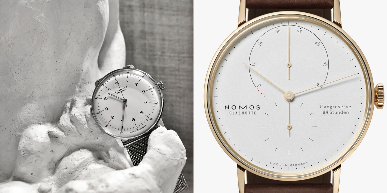 Στον χώρο της ωρολογοποιίας υπάρχουν πολλές εταιρείες με σχέδια εμπνευσμένα από αυτό το κίνημα καθώς και θρυλικά ρολόγια με πιο γνωστό το Max Bill το οποίο κατέχω και λατρεύω. Μία τέτοια εταιρεία είναι και η NOMOS, γνωστή για την πολύ καλή ποιότητα κατασκευής, τους in-house μηχανισμούς και τις σχετικά προσιτές τιμές για αυτό που προσφέρει. Τα ρολόγια της NOMOS, χωρίς να τα θεωρώ άσχημα, δεν μου προκάλεσαν ποτέ κάποιο ιδιαίτερο ενδιαφέρον με μοναδική εξαίρεση το Lambda. Από την πρώτη στιγμή που το είδα με εντυπωσίασε ο σχεδιασμός του καθώς μου επανάφερε στην μνήμη έργα σαν αυτά που φαίνονται στο κολάζ. Δυστυχώς όμως ήταν πολύ ακριβό για εμένα. Η τιμή άνω των 11.000 ευρώ καθώς ο μηχανισμός του είναι δείγμα υψηλής ωρολογοποιίας, με πολύ δουλειά στο χέρι, πλούσια διακόσμηση όπως αρμόζει στην Γερμανική παράδοση και η κάσα χρυσή.