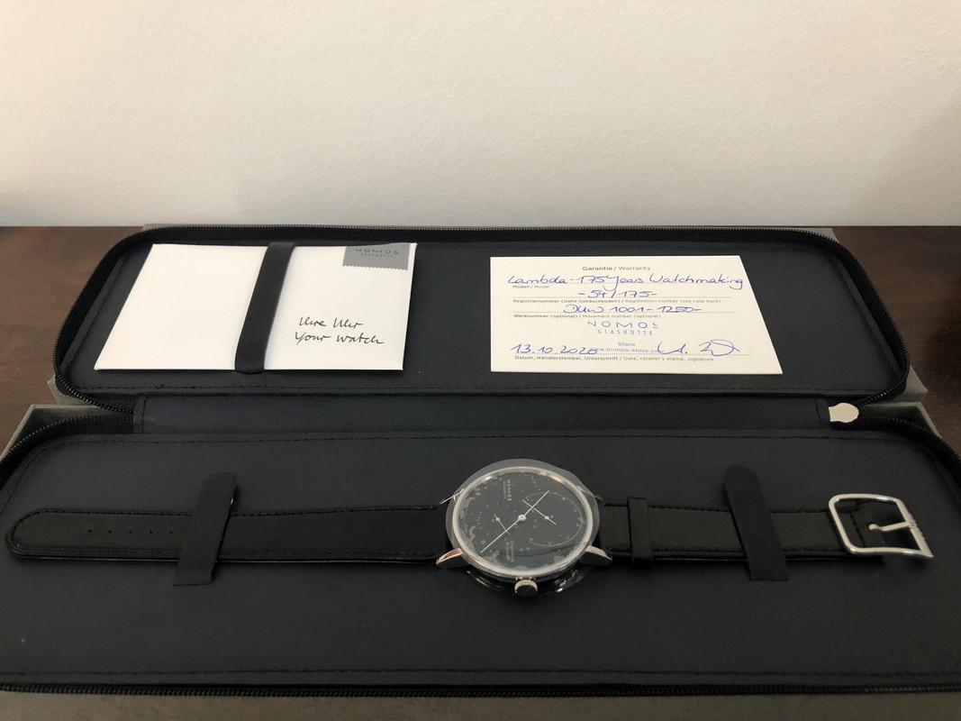 Παρέλαβα μετά από 10 ημέρες. Η συσκευασία όμορφη, απλή και ποιοτική, κάρτα με χειρόγραφη ευχή “Greetings from Glashuette” από τον CEO και φάκελο με την κάρτα εγγύησης χειρόγραφη και αυτή. Λεπτομέρειες που αρμόζουν στην εμπειρία αγοράς ενός πολυτελούς προιόντος και σε κάνουν να νοιώθεις όμορφα.